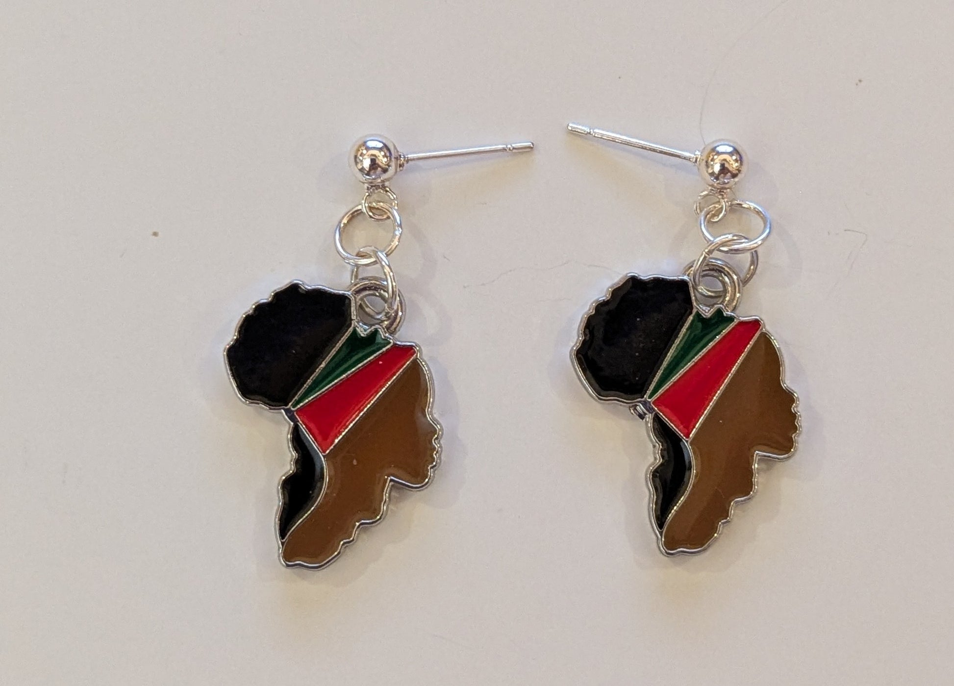 Enameled Black women in profile shaped like Africa.
