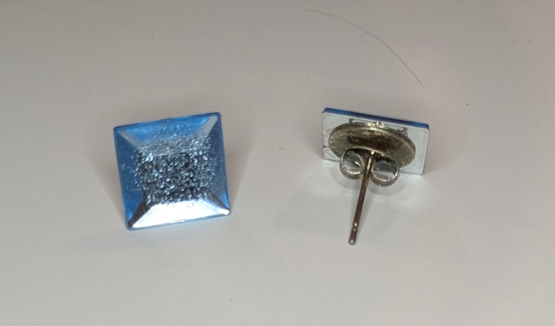 Be the talk of the town with these sparkling post earrings! A glimmering blue square dazzles in the light, making these unique earrings perfect for completing any party outfit. Get ready to sparkle and shine with style!
