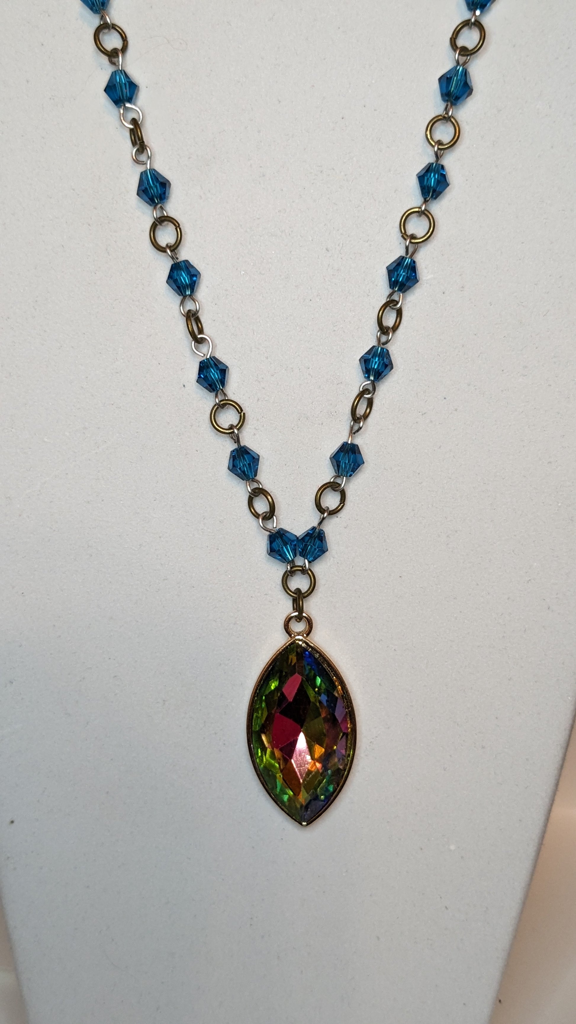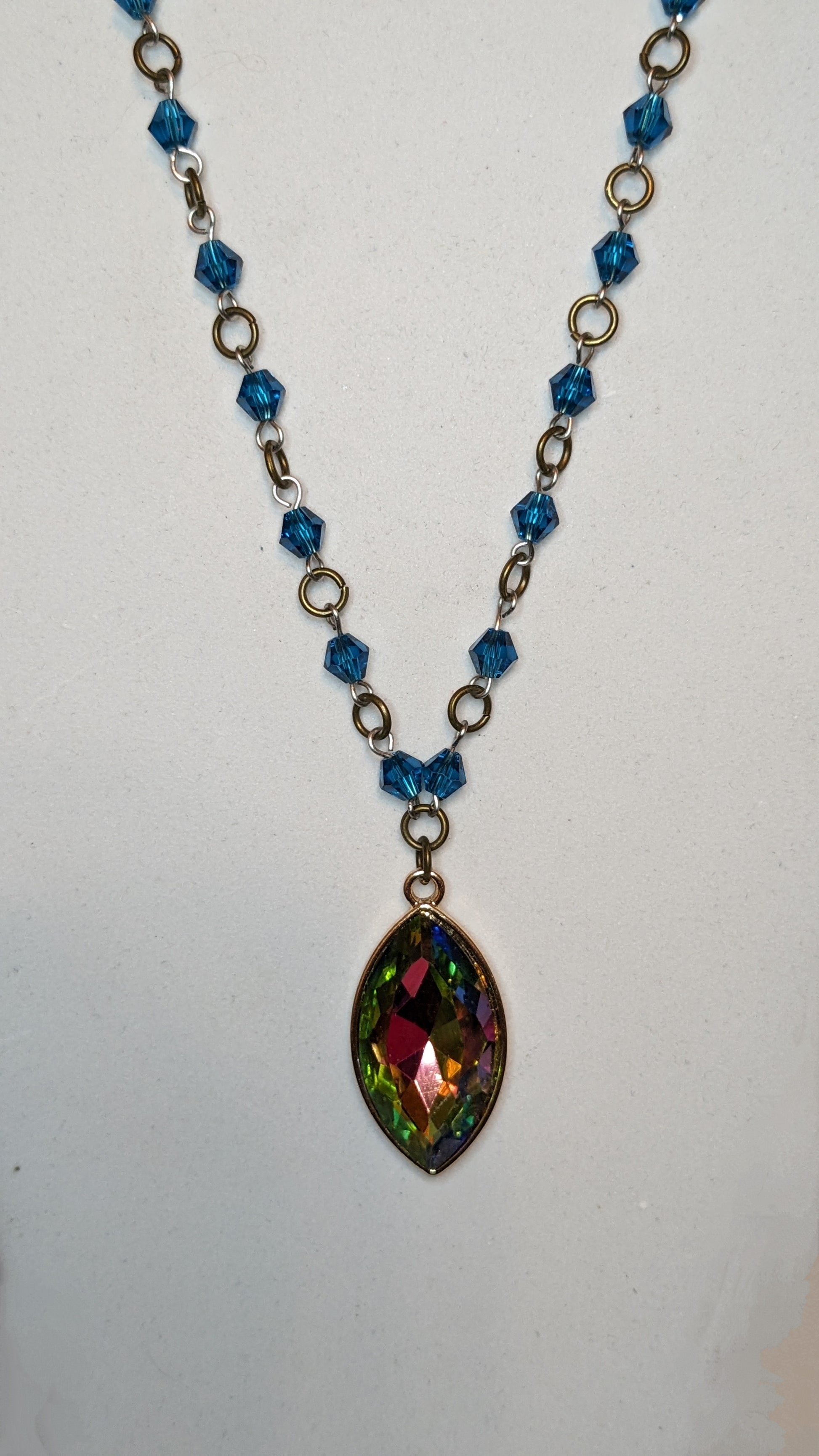 Stunning Beaded Link Necklace with Iridescent Marquise Pendant