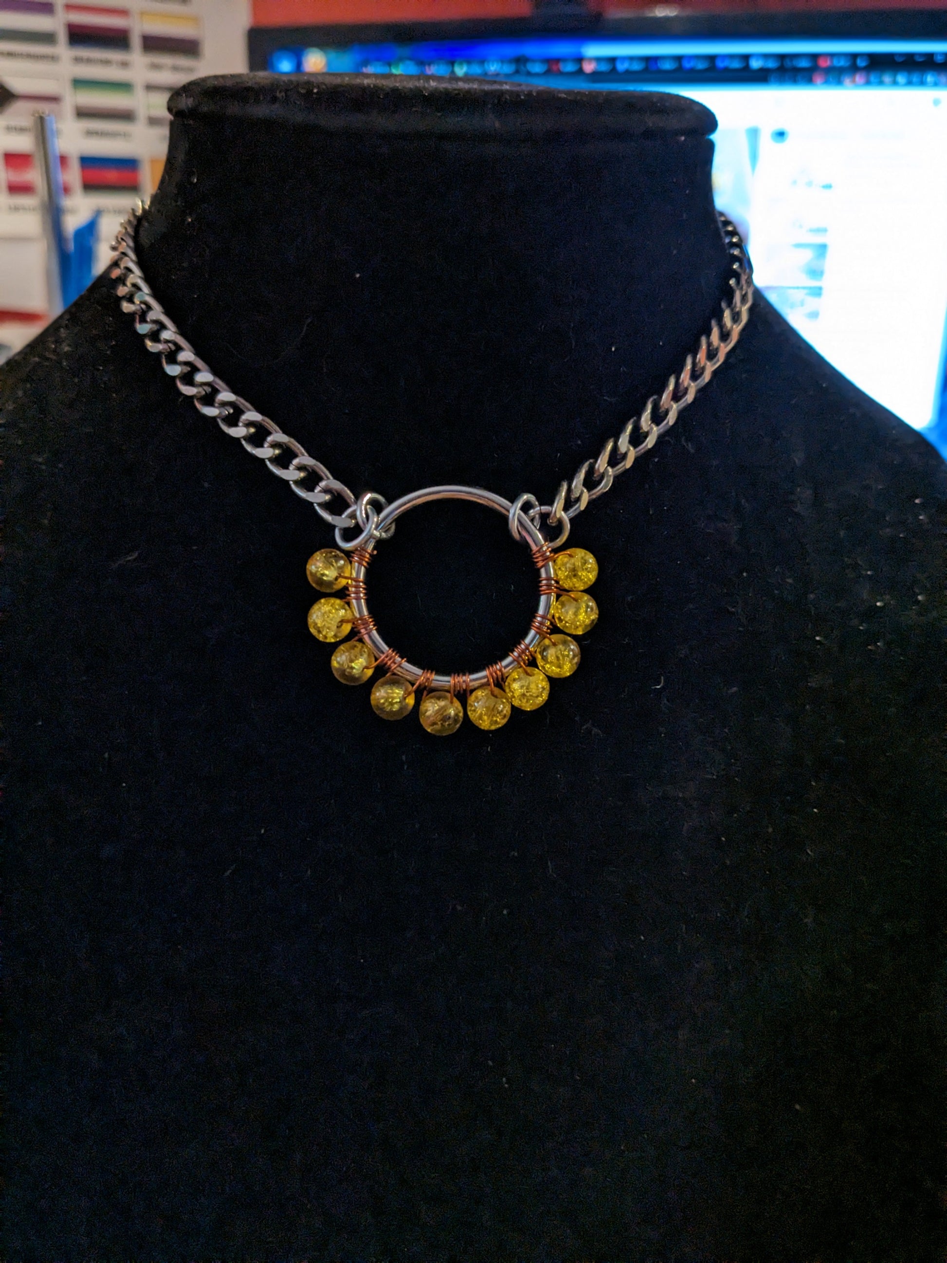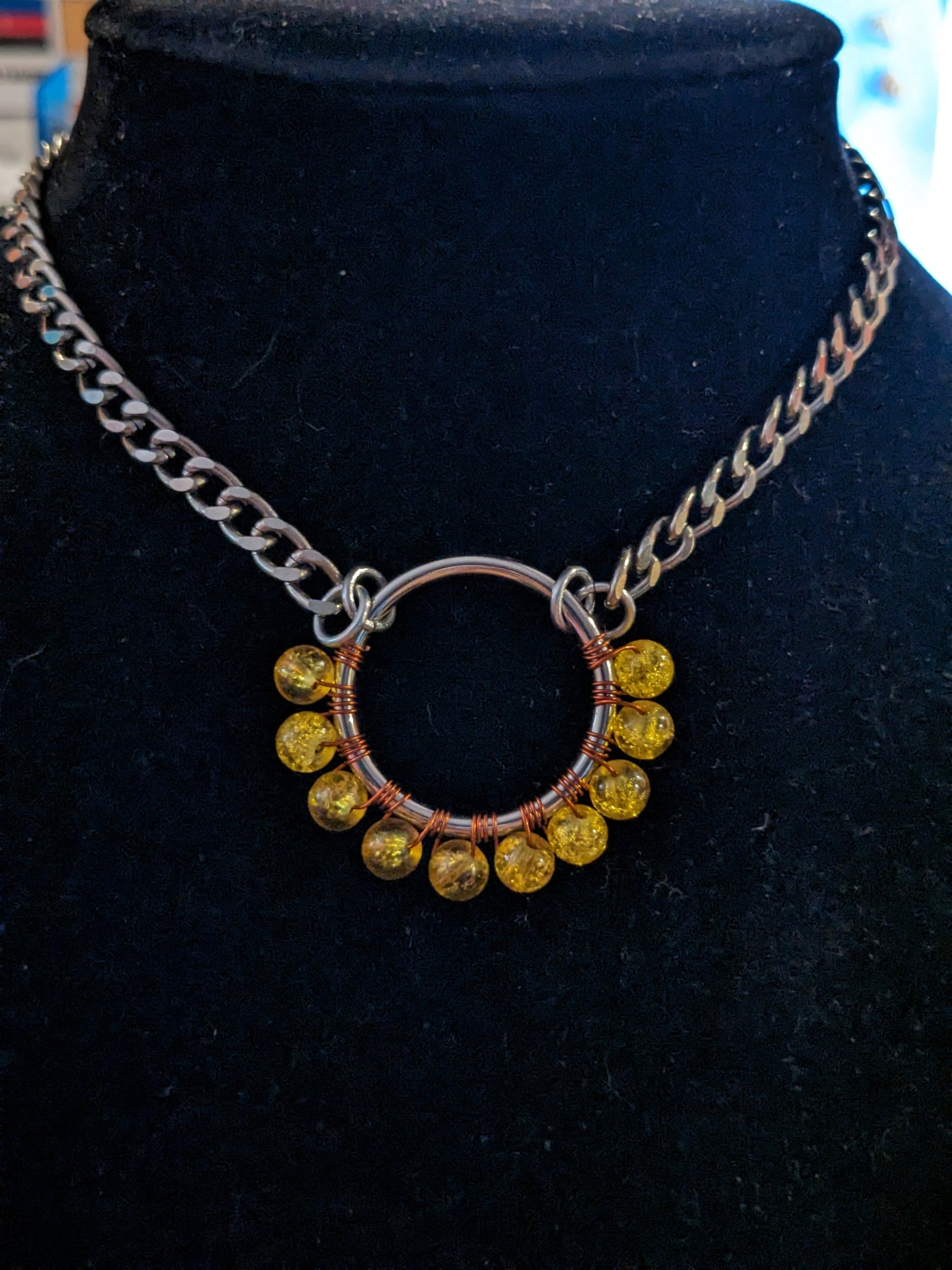 Sunset--Wire Wrapped Beaded Circular Focal Choker